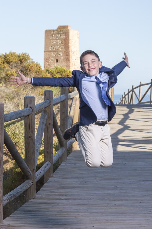 La cita fue en Cabopino donde encontramos múltiples escenarios para todo tipo de fotografía al aire libre. Artur muy guapo vestido con chaqueta azul y bermudas beige.